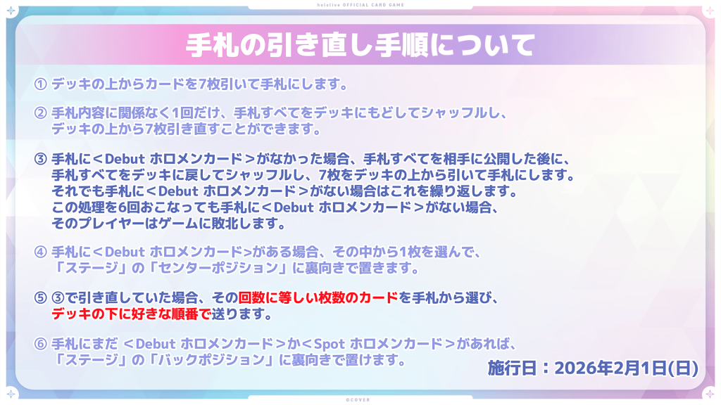 ゲーム開始時の「手札の引き直し」ルールを2/1(日)より変更いたします。